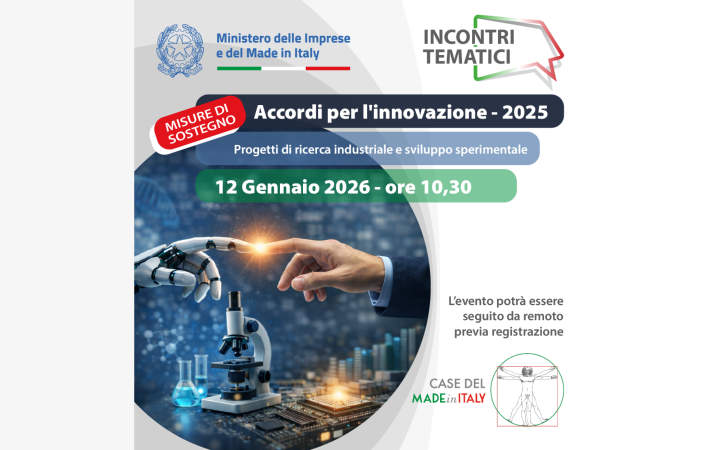 Accordi per l’innovazione – Bando 2025: webinar informativo il 12 gennaio 2026