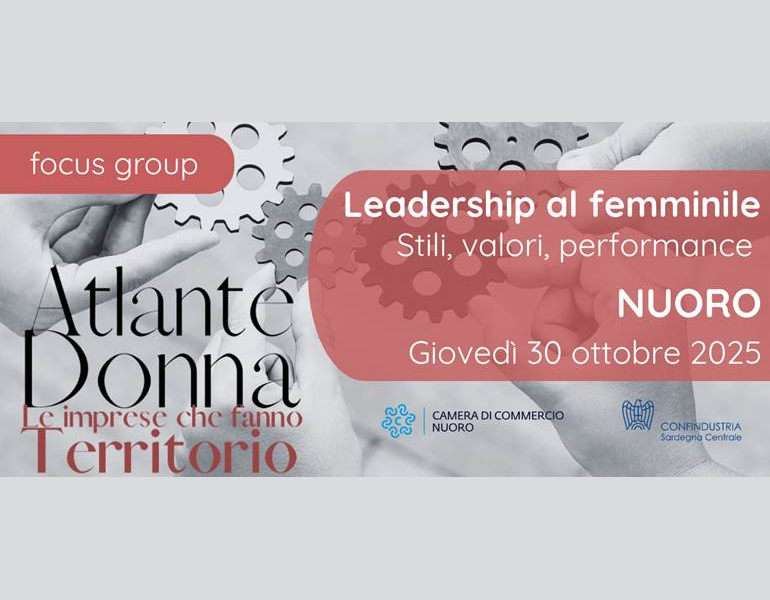 La Camera di Commercio di Nuoro è lieta di segnalare l’iniziativa “Leadership al femminile. Stili, valori, performance”, focus group tematico promosso da Confindustria Sardegna Centrale, in programma giovedì 30 ottobre 2025, dalle 9:00 alle 12:00, presso la sala conferenze ExMè di Nuoro (piazza Mameli).