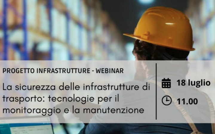 Il 18 luglio dalle 11:00 alle 13:00, su piattaforma meet è in programma il webinar "La sicurezza delle infrastrutture di trasporto: tecnologie per il monitoraggio e la manutenzione".