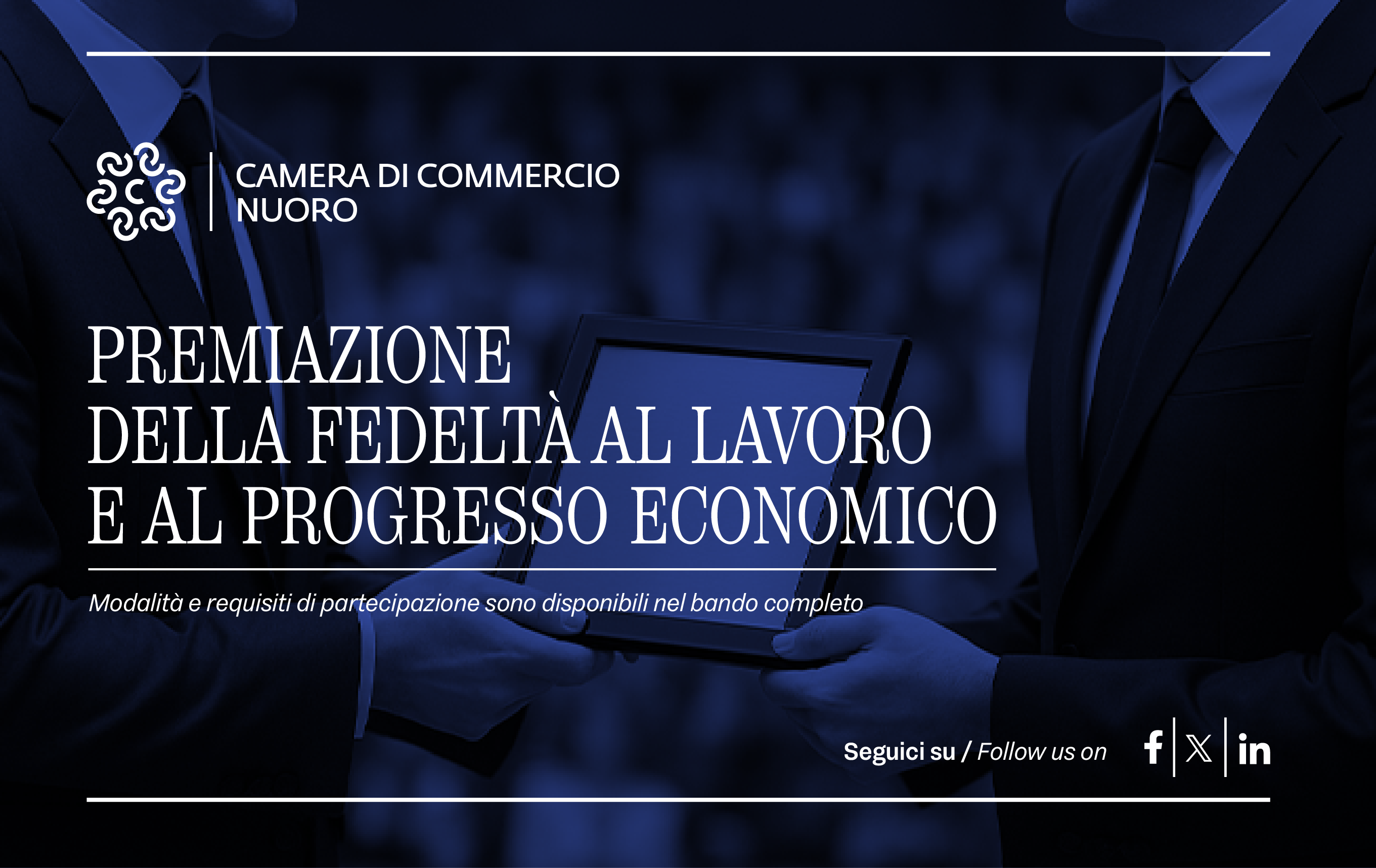 La Camera di Commercio di Nuoro comunica che con det. del Segretario Generale n. 354 del 1 ottobre 2025 sono stati riaperti i termini per la presentazione delle candidature relative all’iniziativa “Premio Fedeltà al Lavoro e Progresso Economico” 2025, fissando nel giorno 10 ottobre 2025 il termine ultimo per la ricezione delle istanze.