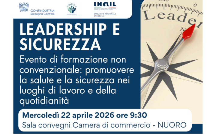 Si terrà mercoledì 22 aprile, alle ore 9:30, presso la Camera di Commercio di Nuoro (via Papandrea), il seminario "Leadership e Sicurezza" dedicato ai temi della salute e sicurezza nei luoghi di lavoro, organizzato da Confindustria Sardegna Centrale in collaborazione con la Direzione regionale INAIL Sardegna.