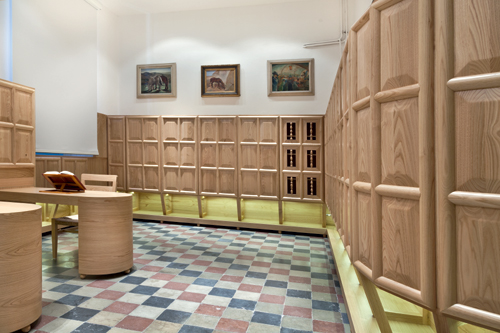 L’ente ha collezionato negli anni un patrimonio di valore che merita la giusta esposizione e la giusta valorizzazione, in grado di ripagare ampiamente l’impegno che la Camera ha dedicato a questo progetto. Il disegno progettuale dei nuovi arredi della biblioteca pinacoteca riprende alcuni caratteri degli anni trenta, originari di sede: i marmi e i pavimenti originali rispecchiano lo stile d’epoca del palazzo camerale, quello stile impero tipico degli anni della sua costruzione, che è stato rispettato anche nel disegno e nella scelta degli arredi delle sale studio.
